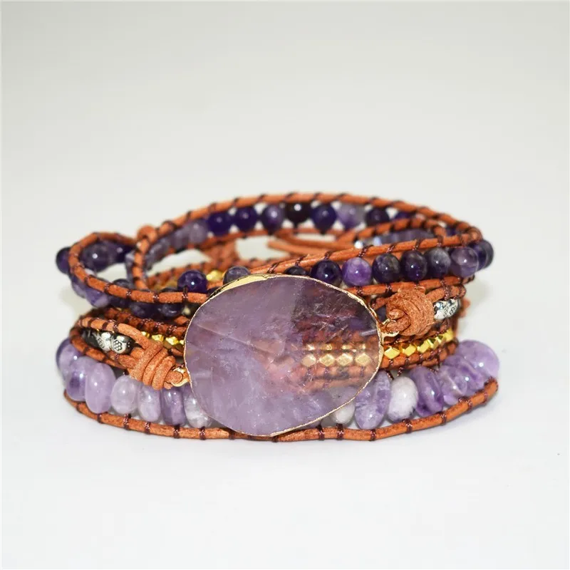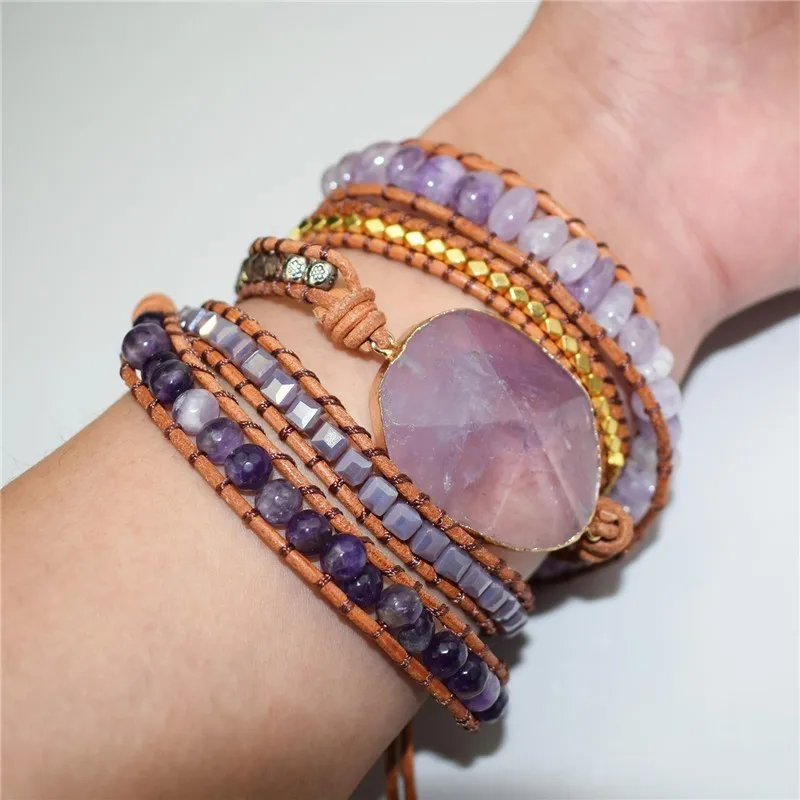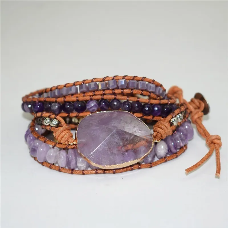 Handmade Leather Wrap Beaded Bracelet Crystal Exquisit Graduated HBoho Chic Jewelry Bracelet Valent