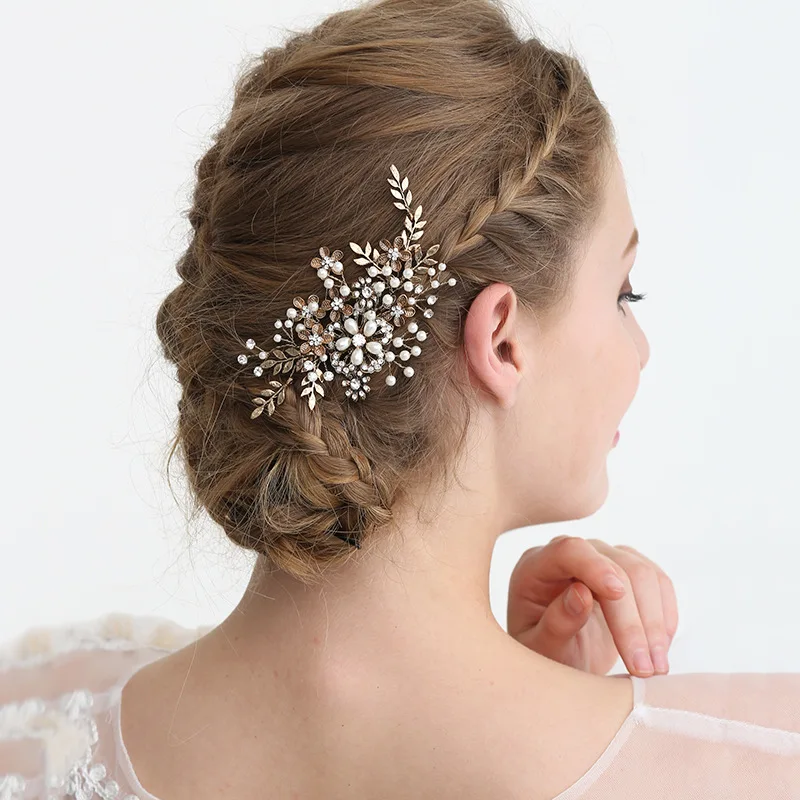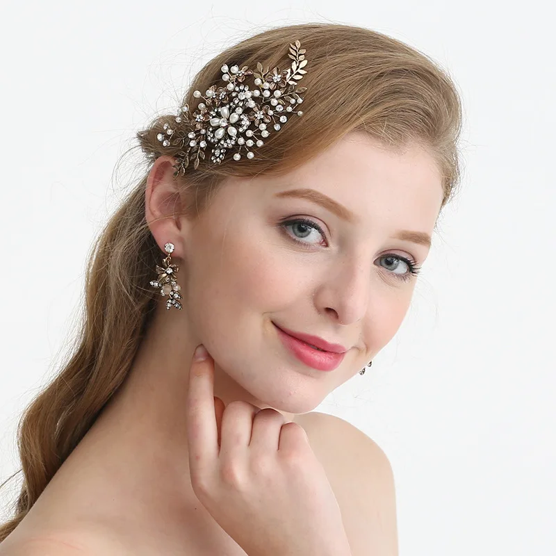 BEST Retro Flower Hair Comb Antique Gold Pearls Crystal Rhinestone Bridal Hair Side Women Prom Barrette