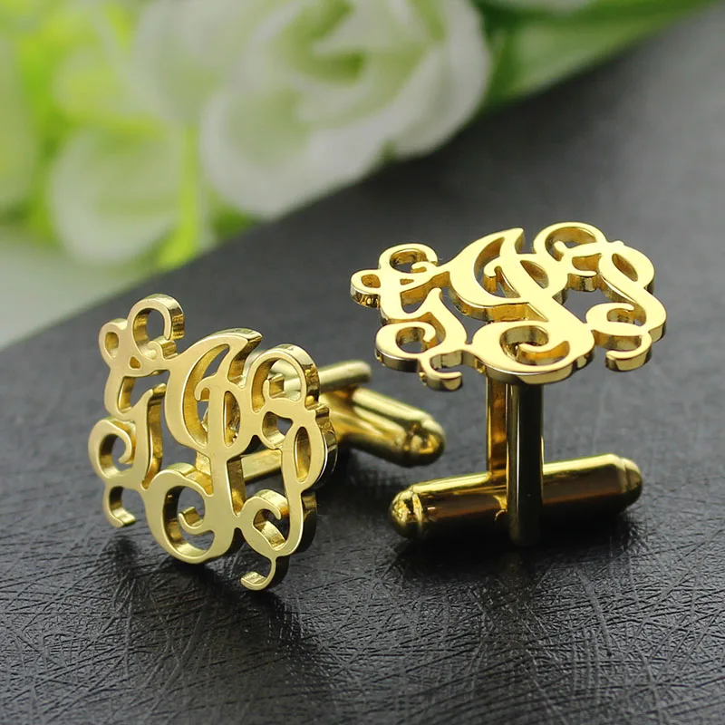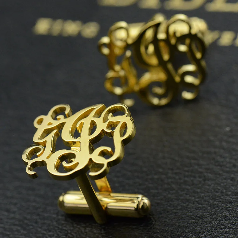 BEST Wholesale Cut Out Monogrammed Cufflinks Gold Color Wedding Cufflinks Personalized Initials Men Cuff
