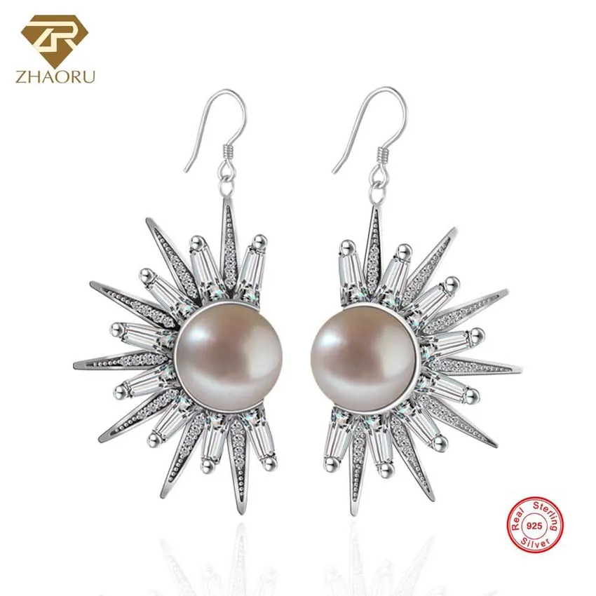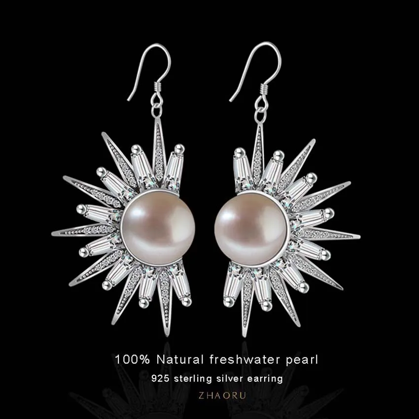 ZHAORU 925 Sterling Silver Freshwanter Pearl Earrings Fashion Jewelry Earrings for Women Western St