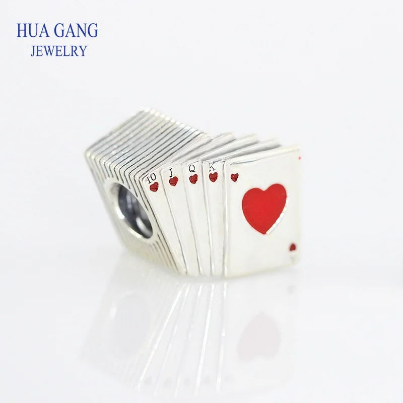 HOT Sale 100% 925 Sterling Silver PLAYING CARDS CHARM Beaded Fashion Women's Wedding Jewelry 797195EN09