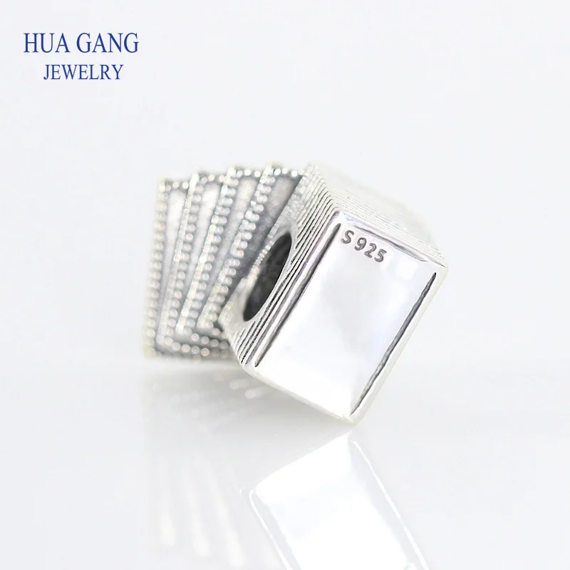 100% 925 Sterling Silver PLAYING CARDS CHARM Beaded Fashion Women's Wedding Jewelry 797195EN09