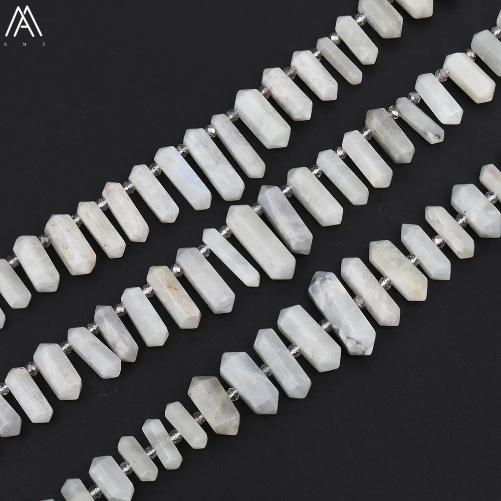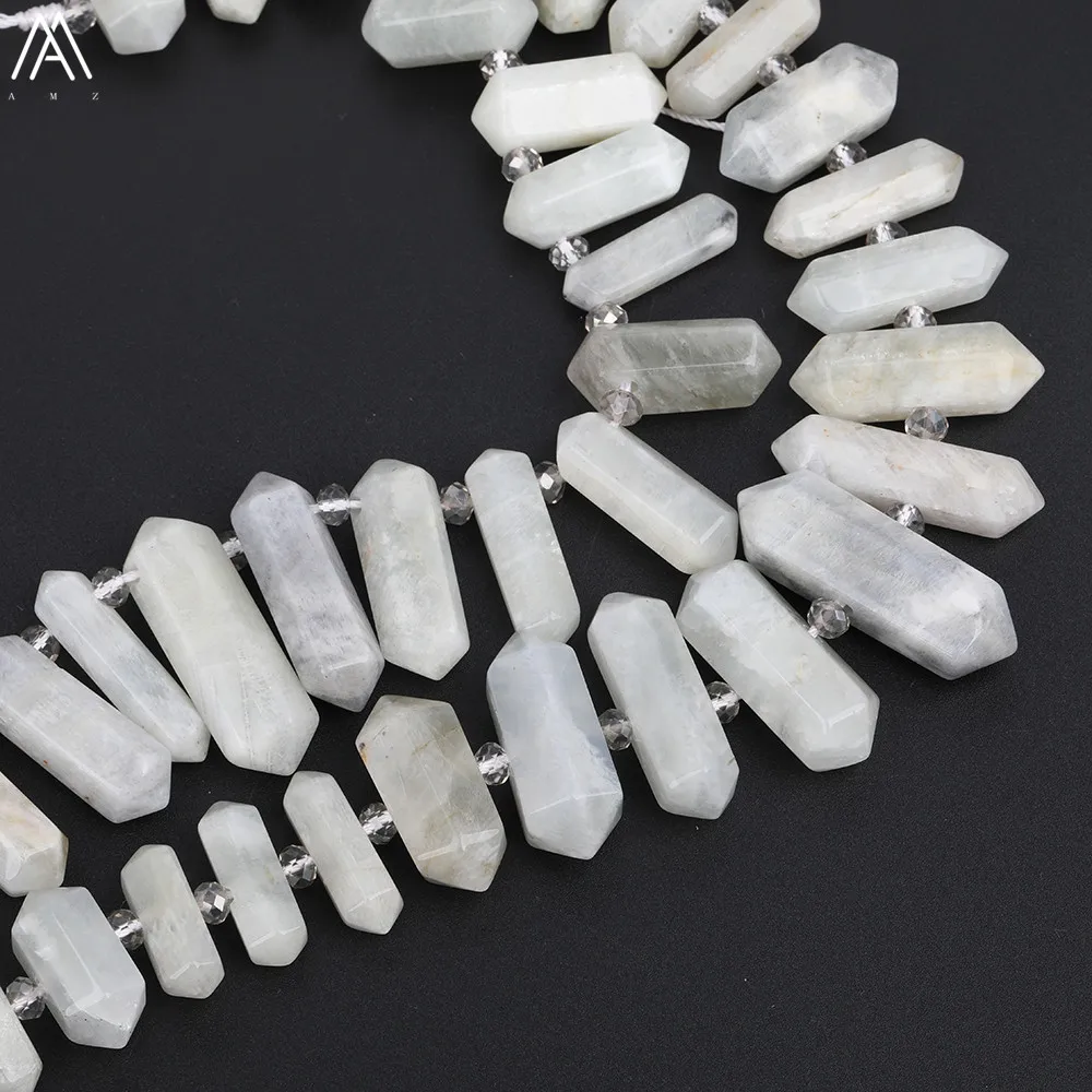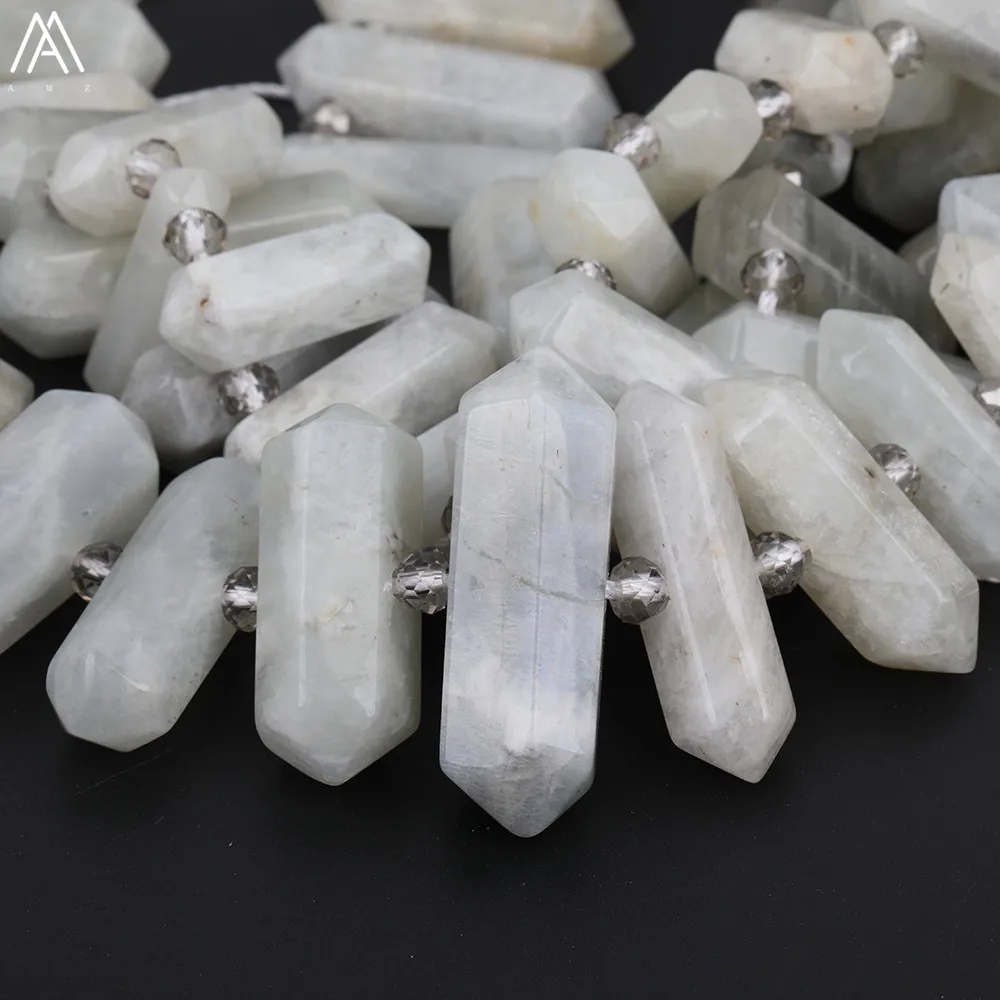 HIGH QUALITY Middle Drilled Double Point Hexagonal Natural White Moonlight Stone Point Beads Loose Beads Necklac