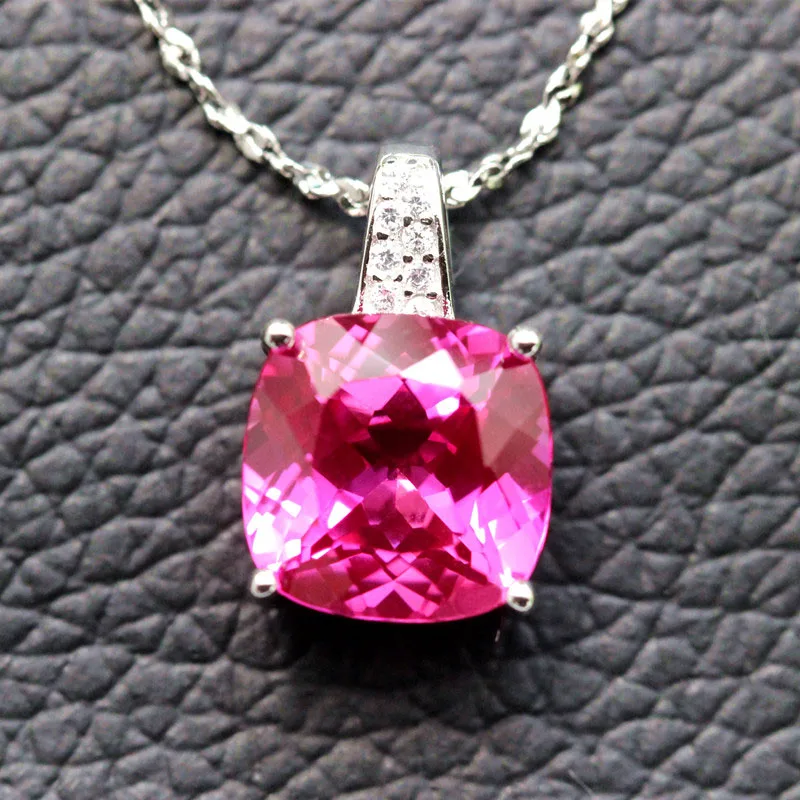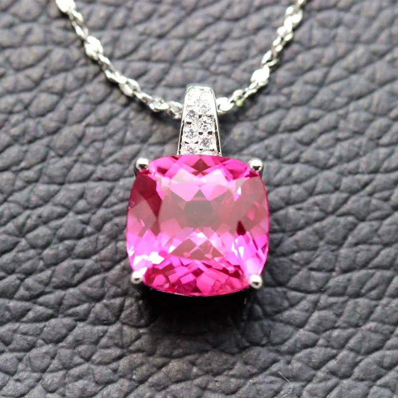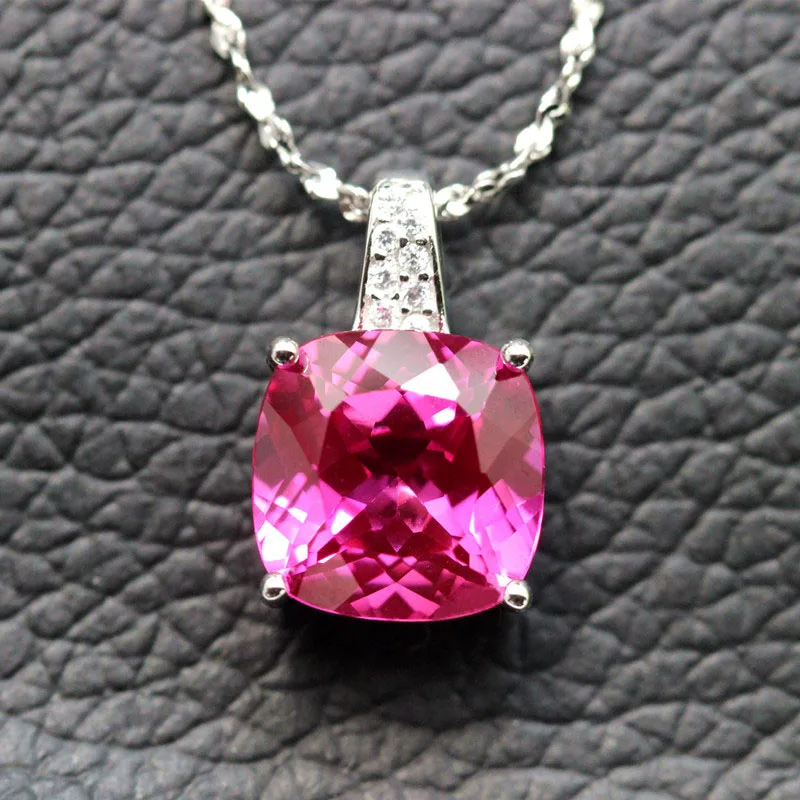 rose red stone Necklace pendants 925 silver red tourmaline stone pendant women jewelry squared free