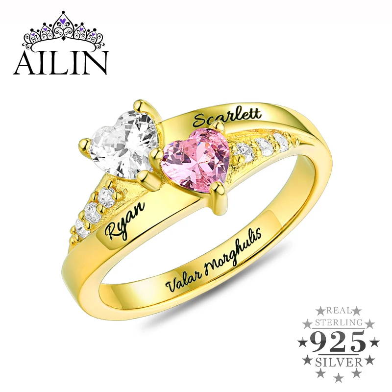 BEST QUALITY Wholesale Personalized Women Promise Birthstone Ring For Her Engraving Two Names Ring Love Annivers