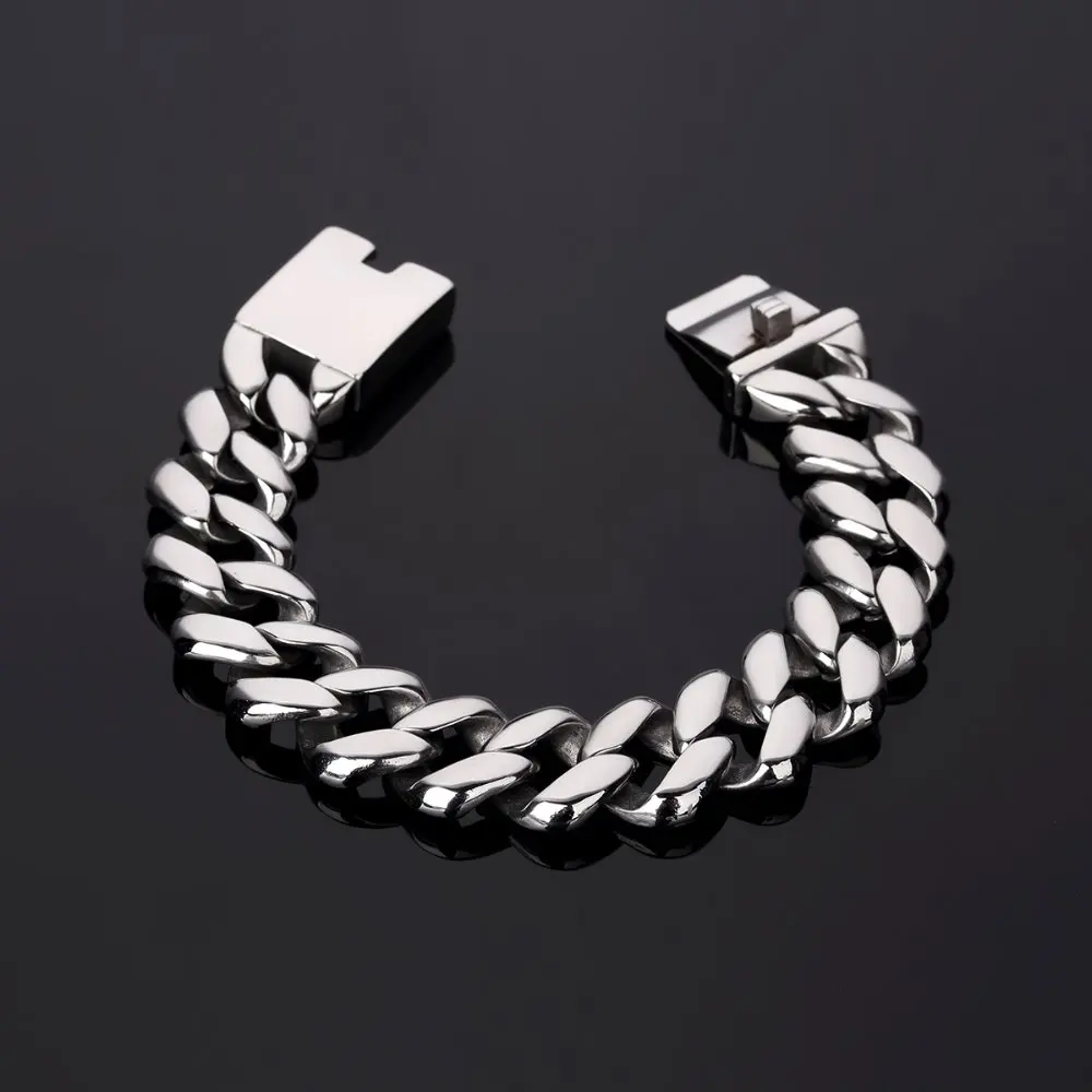 ORIGINAL 20mm Hip Hop Bling Golden Ultra Stainless Steel Bracelets Rock Motorcycle Hand Chains Jewelry Wrist