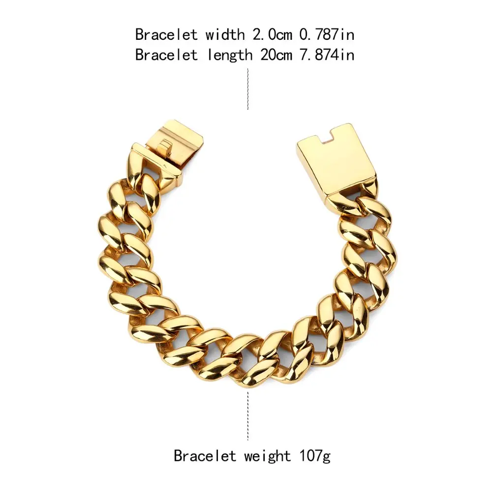 20mm Hip Hop Bling Golden Ultra Stainless Steel Bracelets Rock Motorcycle Hand Chains Jewelry Wrist