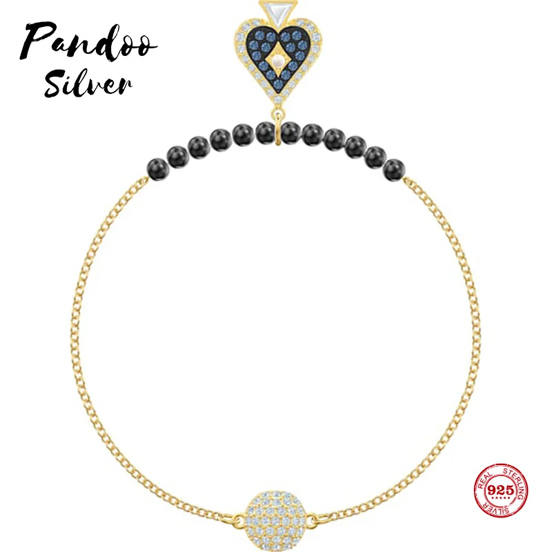 REVIEW TOP SELLER Fashion Charm Pure 925 Silver Original 1:1 Copy Personality Playing Card Elements Spades Bracelet F