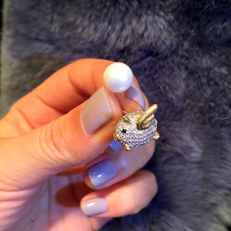 Review cute deign 925 stelring silver jewelry for women piggy stud earrings with pearl cute pink pig earri