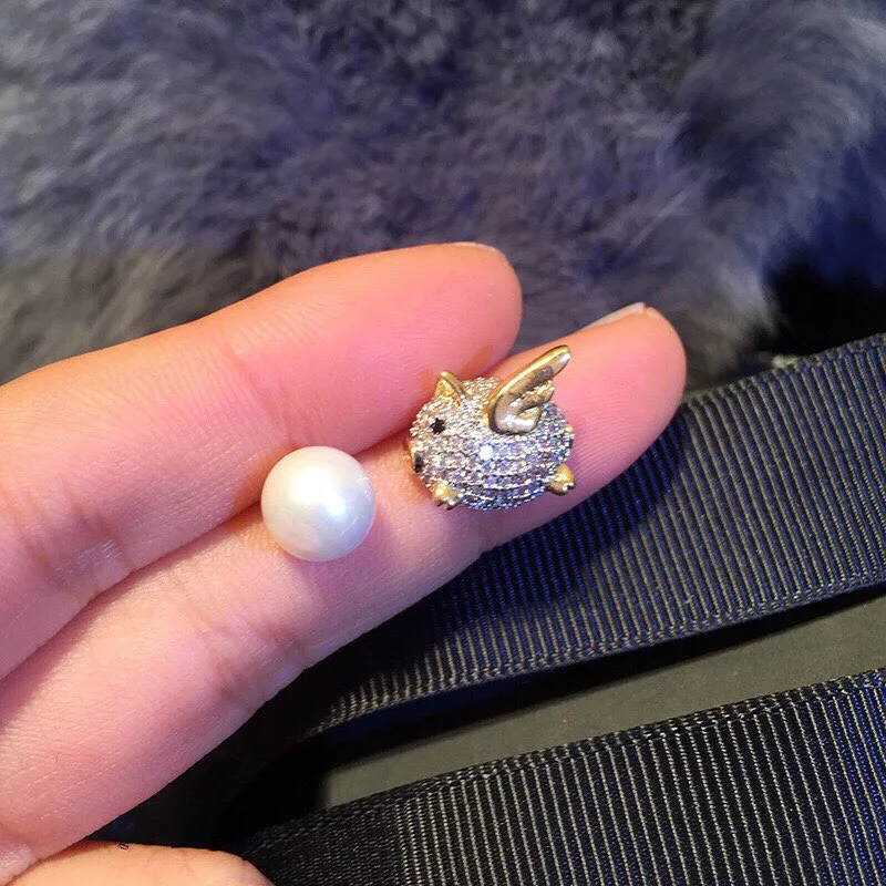 TOP cute deign 925 stelring silver jewelry for women piggy stud earrings with pearl cute pink pig earri