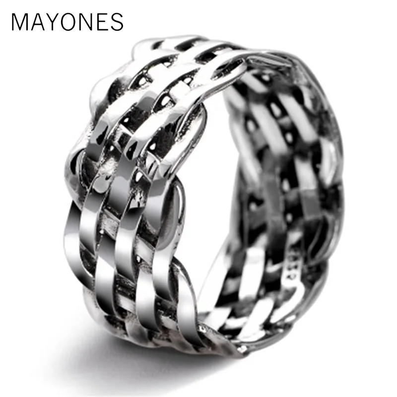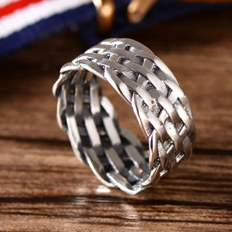 TOP Mens Plain Silver 925 Rings Women Braided Band 925 Sterling Silver Jewelry Men Oxidized Thai Silver
